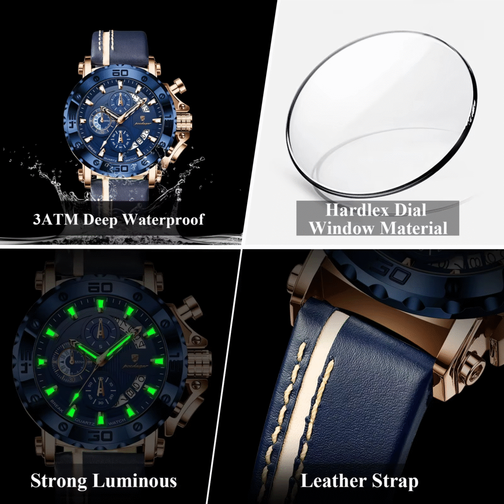 We are so confident you’ll love the POEDAGAR Alpha Male Waterproof Leather Watch that we offer a 100% satisfaction guarantee. If, for any reaso,n you are not satisfied within 60 days of purchase, we offer a full refund.